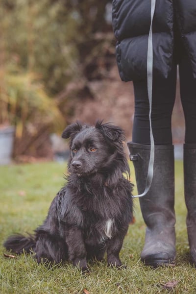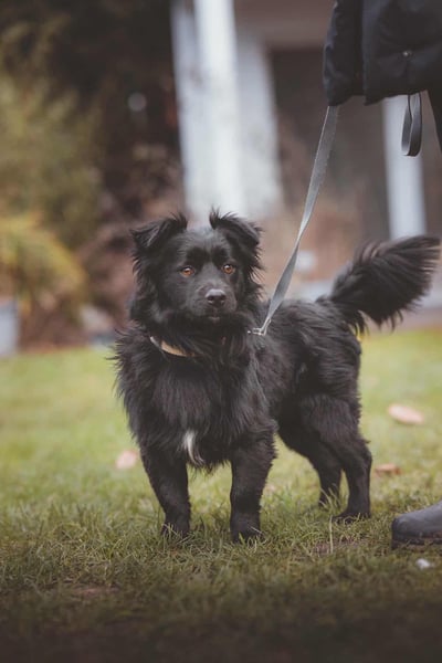 Leinenführig: nein, draußen lässt er sich von Geräuschen, Gerüchen, Tieren stark ablenken, ohne dabei aber ängstlich zu sein.