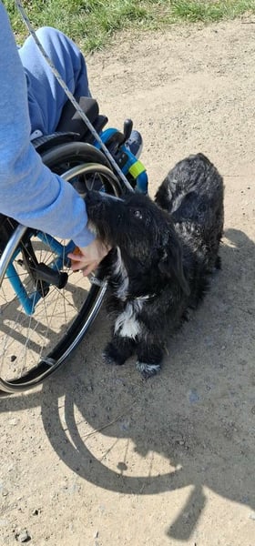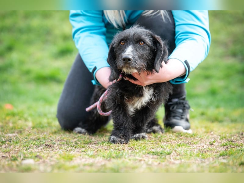 Eira ist eine liebe Hündin und bringt ein lebendiges Wesen mit. Sie ist zugänglich, verspielt, neugierig und kennt keine Berührungsängste. Im Gegenteil: Sie ist immer gerne mitten im Geschehen, wenn etwas Spannendes passiert. In ihr steckt definitiv ein kleiner Terrier und der wird sicherlich früher oder später auch mal sagen: „Ich hätte da übrigens auch eine Meinung!“ Sie zeigt sich in der Hundegruppe souverän und durchsetzungsfähig, manchmal auch ein bisschen dominant, aber immer im Rahmen und gut händelbar. Natürlich muss Eira noch einiges lernen – vom Hunde-ABC bis zu den Regeln des Alltags. Mit anderen Hunden ist sie verträglich und lebt aktuell problemlos in einer gemischten Gruppe.