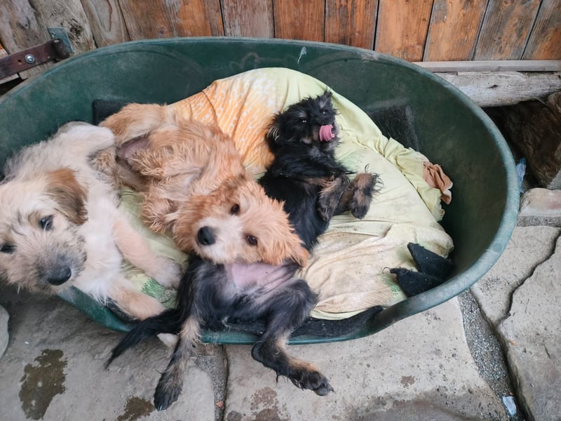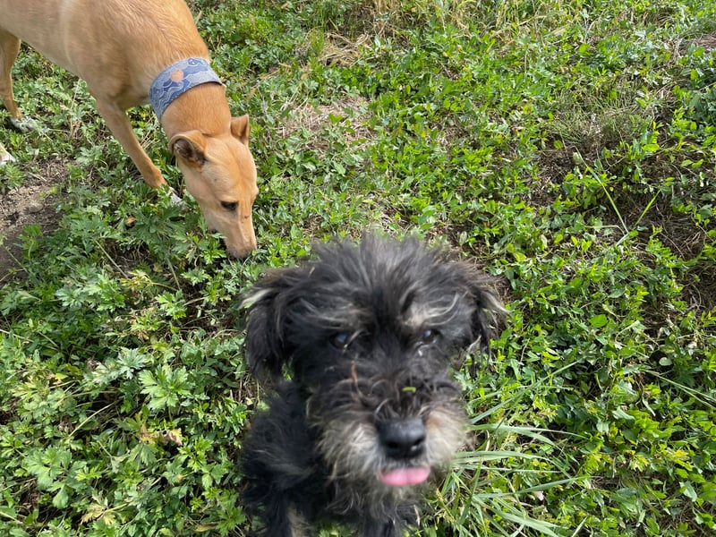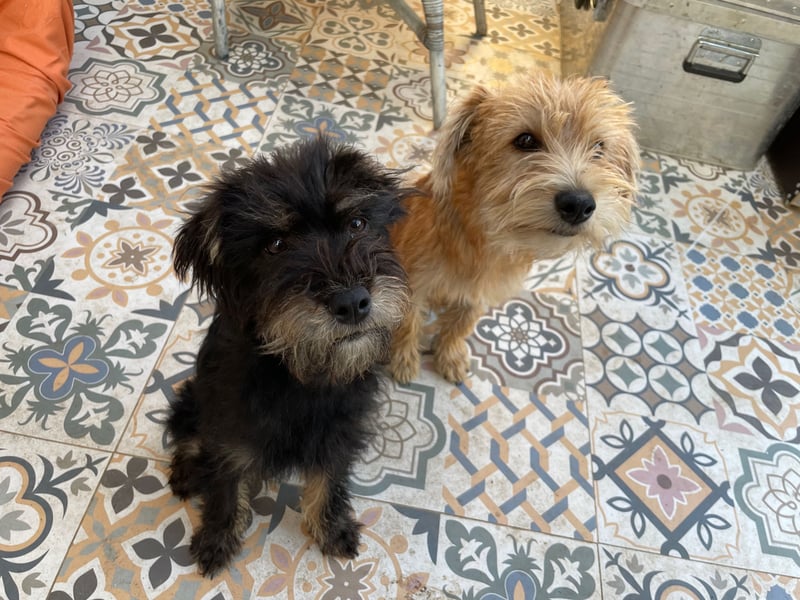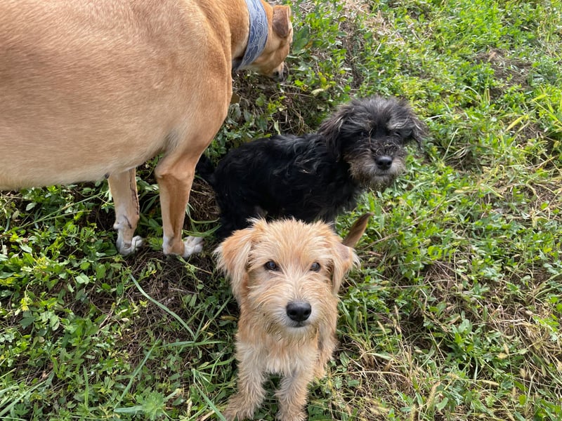 Die beiden haben sich zu lustigen, aufgeweckten Hundekindern entwickelt, die bereit sind, die Welt zu entdecken. Sie sind sehr sozial im Umgang mit Artgenossen und kennen Katzen.