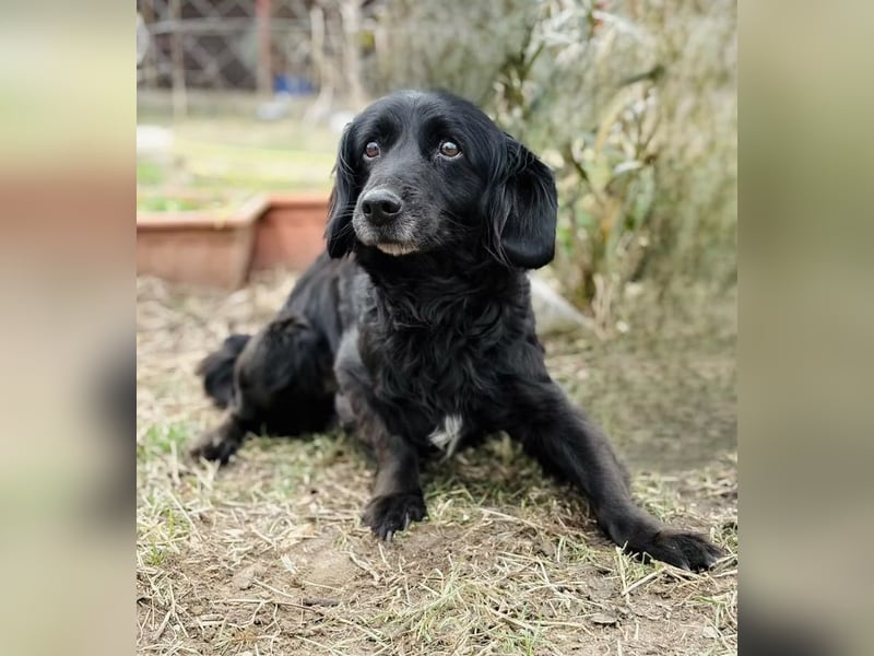 Pötyi ist eine bezaubernde, ältere Hündin, vermutlich ein Mix, die trotz ihrer schüchternen Art sofort mit ihrem sanften Wesen berührt. Geboren am 01.01.2013, misst sie etwa 38 cm und wiegt rund 9,6 kg – eine zarte, sensible Begleiterin, die langsam lernt, Vertrauen zu fassen.