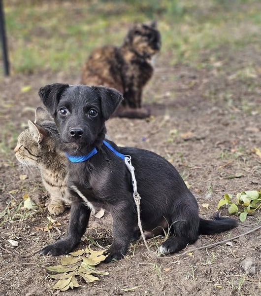 Escuro, Rüde, Mischling, geboren ca. 01. Juli 2025 (von einem ungarischen Tierarzt geschätzt), nicht kastriert, Schulterhöhe: z.Z. ca. 21 cm und ca. z.Z. 2-3 Kilo (Hals: 18-23 cm, Brust: 32-37 cm), Vermittlung zu Katzen: ja, wenn diese das Leben mit Hunden kennen. Auf Wunsch wird auch extra nochmals getestet, nur eine Garantie gibt es nicht.