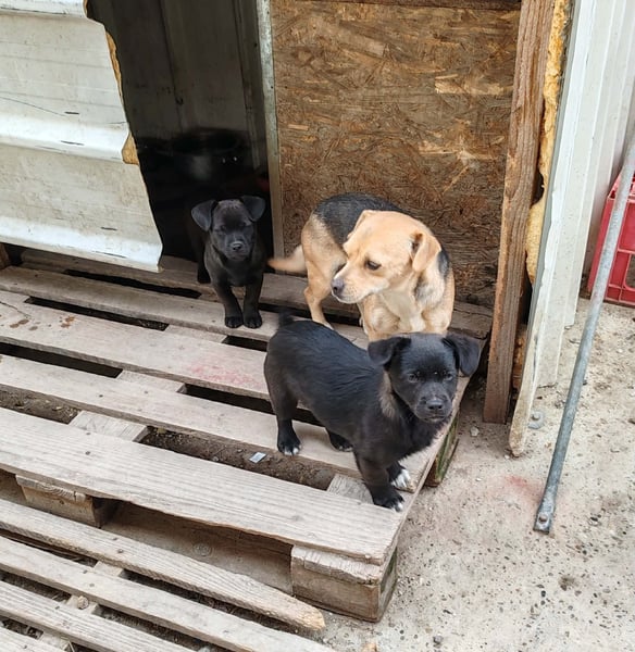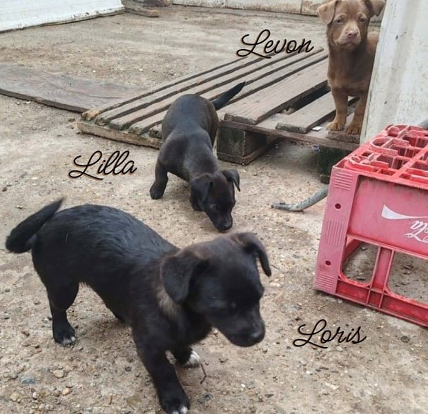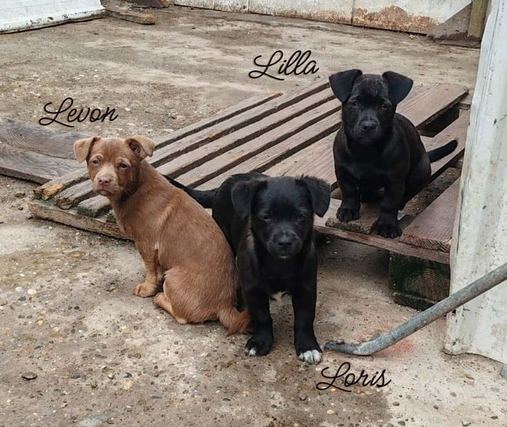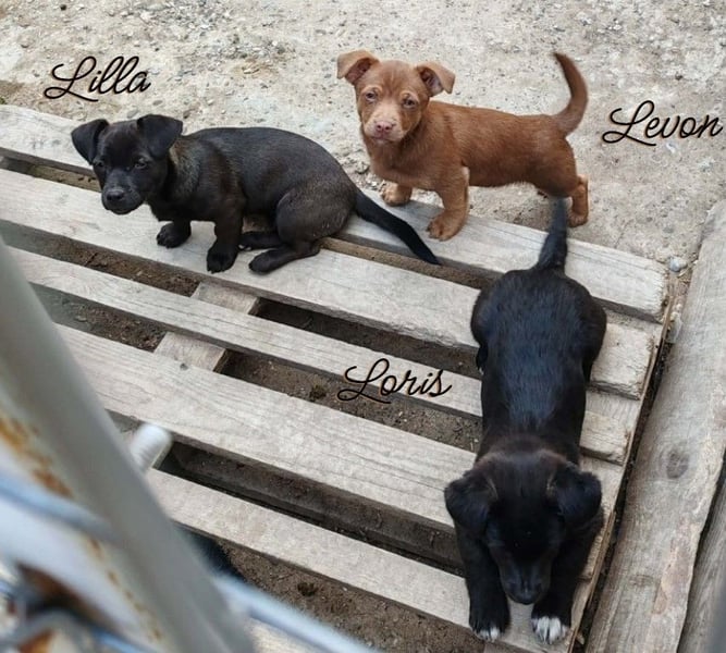 Lilla, Levon und Loris wurden auf einem leerstehenden Hof geboren. Ein freundlicher Nachbar hat sich um die kleine Familie gekümmert und sie gefüttert. Der Mann hat unsere rumänische Tierschützerin Dalila über die unkastrierte Mama und ihre Babys informiert und um Hilfe gebeten, da er Angst um sie hatte. Dalila ist dorthin gefahren und hat alle Hunde mitgenommen und in Sicherheit gebracht. Die Mama wurde bereits kastriert, hat ihre Menschen gefunden und wird bald Rumänien verlassen.