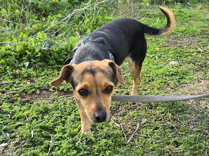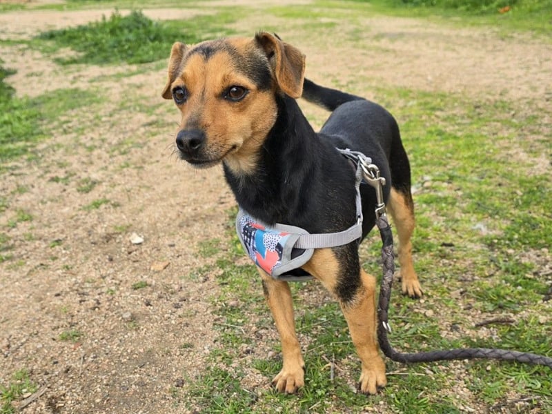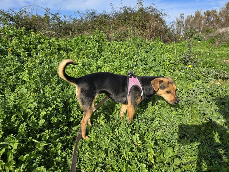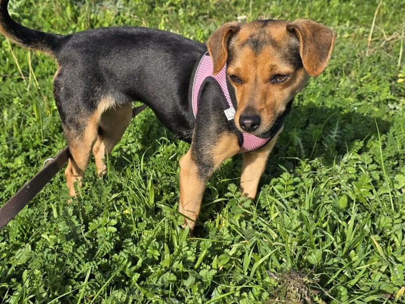 Charlotte ist ein Zwergpinscher Mix . Sie ist klein und zart, weiß sich aber zwischen den Jungs durchzusetzen. Aufgeschlossen geht sie auf Menschen zu, geht schon gut an der Leine und liebt abwechslungsreiche Spaziergänge.