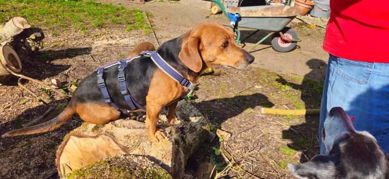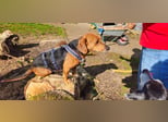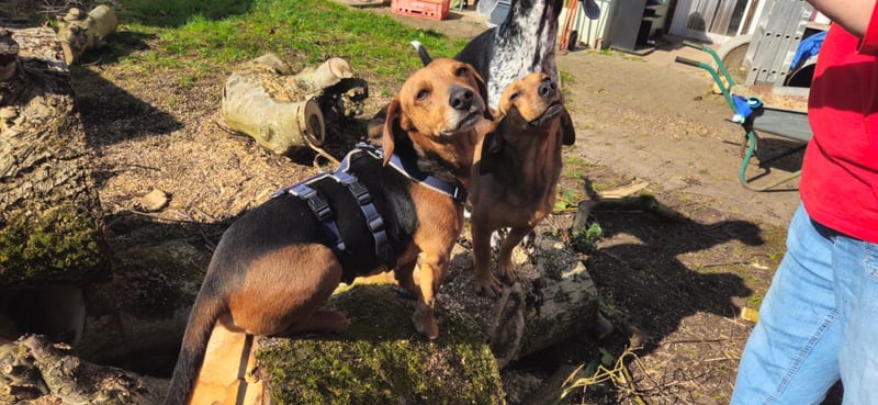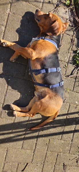Dir das Sicherheitsgeschirr anzuziehen ist noch immer eine längere wirkliche Herausforderung, denn du freust dich unbändig auf den Spaziergang und musst dich zwischendurch ständig auf den Rücken werfen, aber irgendwie schaffen wir es dann doch mit viel Gewusel und Spaß Euch alle drei anzuziehen. Autofahrten sind auch toll für dich, denn meistens geht es in den Wald und da bist du dann ganz Dackel. Schnüffeln und buddeln ist ja auch was herrliches.