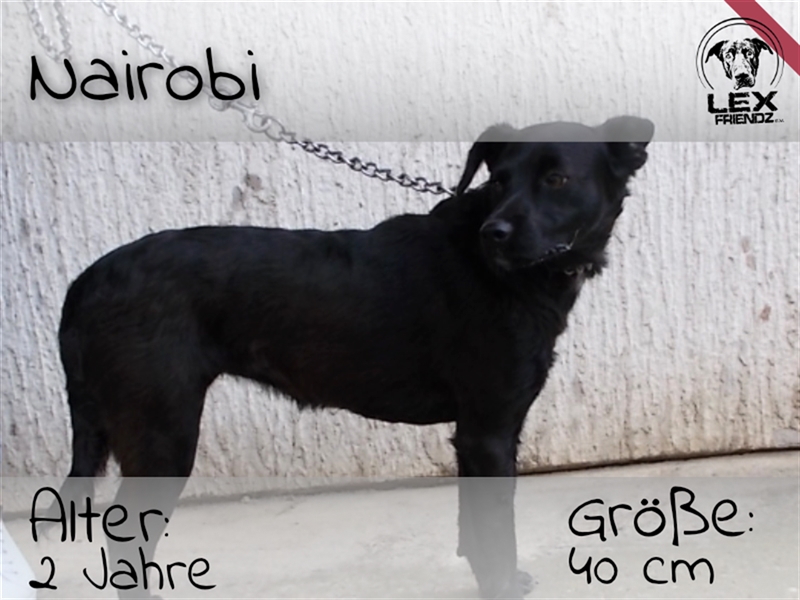 Nairobi ist ein liebes Mädl, freundlich und aufgeschlossen. Sie lief auf der Straße herum auf der Suche nach Anschluss, vergebens. So kam sie hier rein und nun suchen wir für sie.