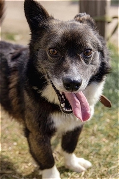 Kiwis ist ca. 3 - 4 Jahre alt. Er hat eine Rückenhöhe von ca. 35 cm und gehört somit zu den kleinen Hunden.