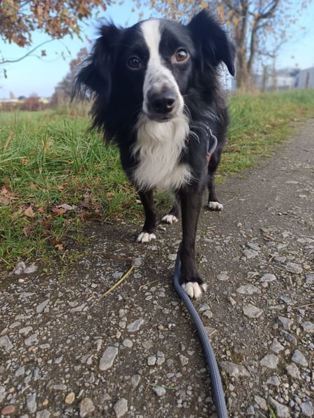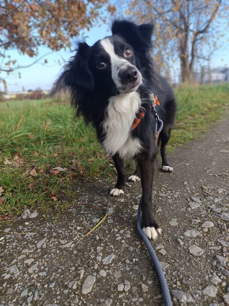 Leinenführigkeit: Läuft brav an der Leine und ist gut abrufbar.