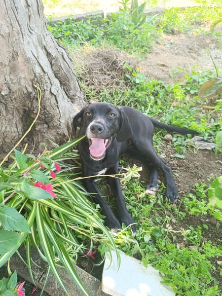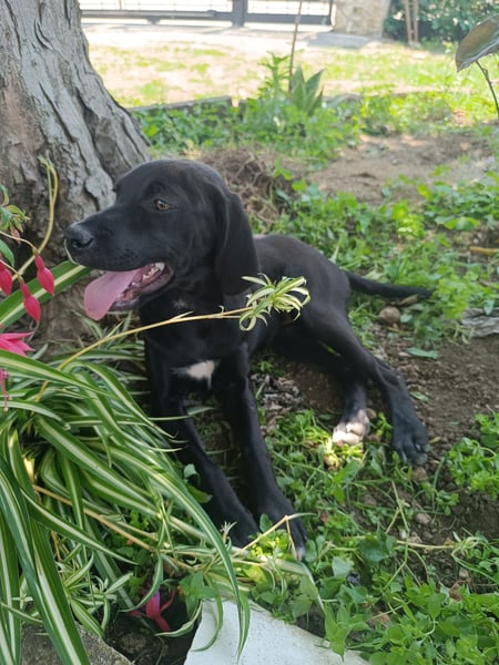 Dea wurde zusammen mit ihren Geschwistern ausgesetzt. Es war mühsam sie zu finden, denn aus Angst versteckten sie sich im Gebüsch. Endlich konnten sie gesichert werden. Um ihnen das Tierheim zu ersparen, wurden sie getrennt. Dea lebt momentan mit einer Schwester in einer Pflegestelle, dort können sie aber leider nicht bleiben. Die Hunde leben im Zwinger, treffen sich aber 1-2 mal am Tag, um zu sozialisieren und zu spielen. Dea kann auch schon an der Leine gehen. Sie ist eine sehr liebe und freundliche Hündin, sehr gesellig, nicht ängstlich aber in keiner Weise aufdringlich.