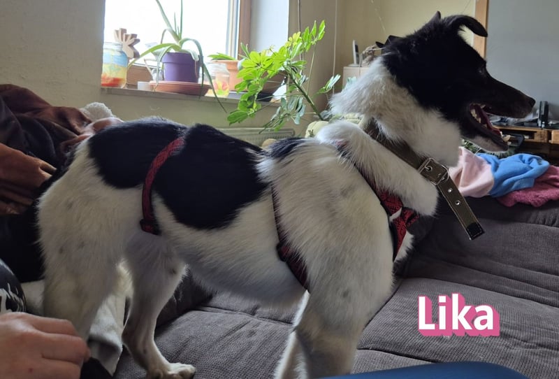 Derzeit übt Lika die Stubenreinheit, macht dabei jedoch gute Fortschritte, sie hört schon gut auf ihren Namen und läuft ohne Ziehen an der Leine.