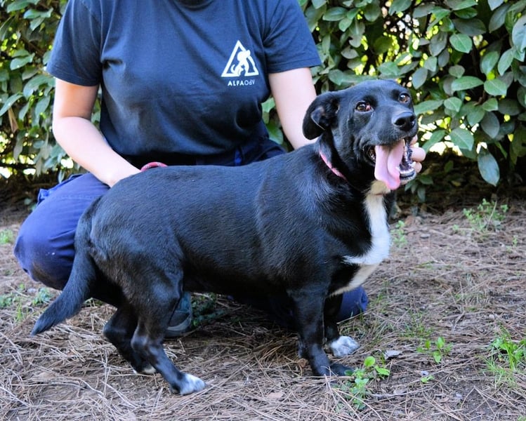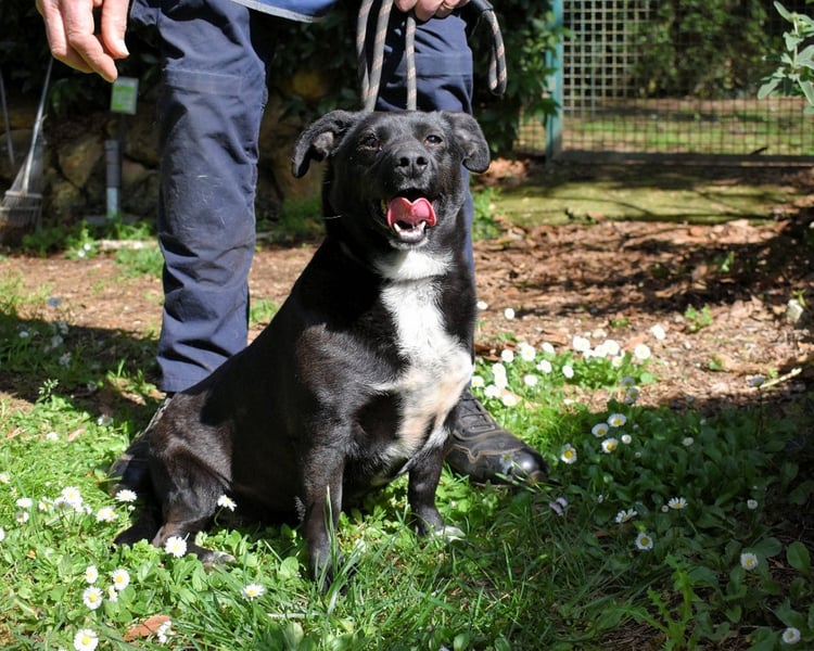 Im Zwinger zeigt Nettie weiterhin, was in ihr steckt: Sie versteht sich blendend mit Rüden und Hündinnen, sorgt für Stimmung in der Gruppe und verteilt fleißig freundliche „Bonbons“ an Mensch und Hund.