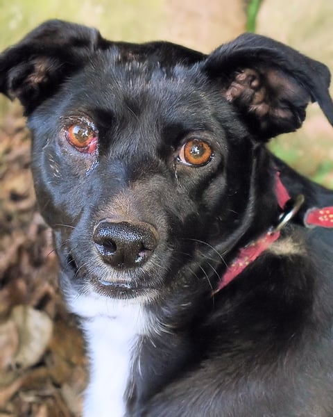 Ihr rechtes Auge ist ein sogenanntes „Cherry-Eye“ - das ist eine vergrößerte Nickhaut, die zu Reizungen und Rötung am Auge führen kann. Es ist gut behandelbar und könnte mit einem kleinen tierärztlichen Eingriff leicht behoben werden, wenn Netti nicht in diesem Hundelager leben würde, in dem an medizinische Betreuung nicht zu denken ist.