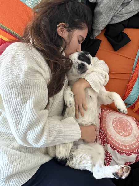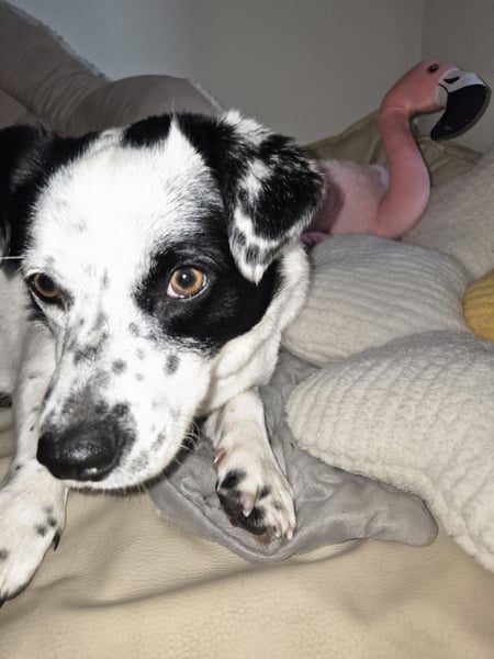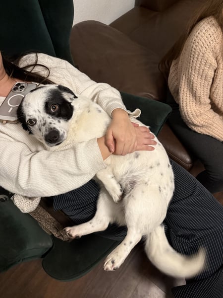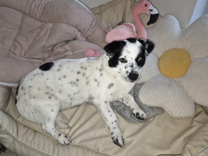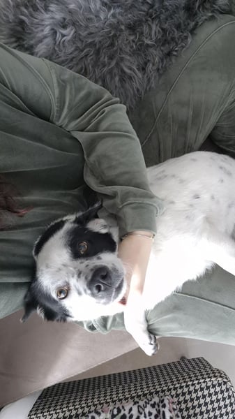 Ich bin eine ruhige Hündin, gehe gerne spazieren und entdecke die Welt, aber genauso genieße ich meine Kuschelzeit auf dem Sofa.
