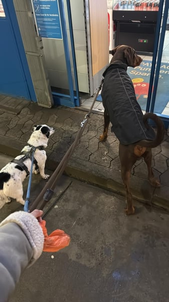 An der Leine laufe ich brav und orientiere mich am Menschen.