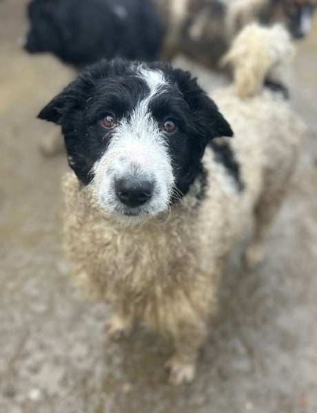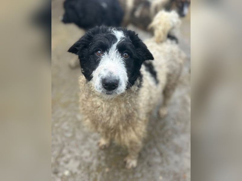 Heute ist sie zu einer richtig tollen Junghündin herangewachsen – und optisch etwas ganz Besonderes: Wenn man sie sieht, könnte man fast meinen, sie wollte ursprünglich ein kleines Schaf werden. Ihr Körper ist weiß mit längerem, leicht lockigem Fell, während ihr Kopf schwarz-weiß gezeichnet ist – einfach wunderschön.