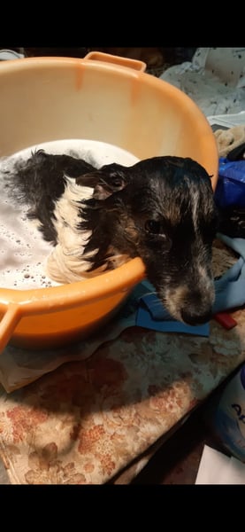 Trotzdem bleibt Polina immer freundlich, ruhig und lässt sich ohne jede Aggression baden