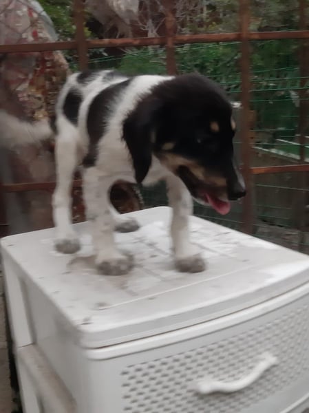Flecken in ihrem weißen Fell. Sie ist ein fröhliches und quirliges Mädchen und ist nun auf