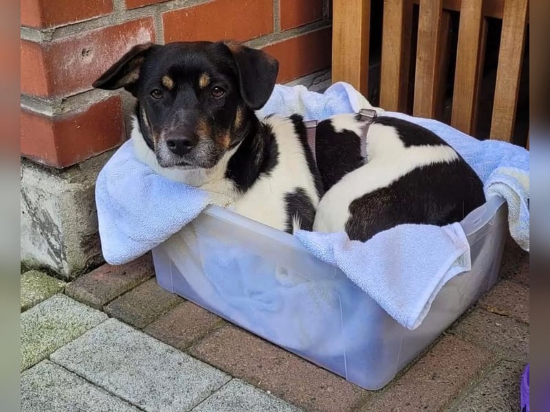 Der kleine Mischlingsrüde ist ein fröhlicher, neugieriger und verspielter Kerl, der gerade dabei ist, die Welt zu entdecken. Besonders schön findet er die Nähe zu seinen Menschen – gemeinsame Zeit, Aufmerksamkeit und Kuscheleinheiten genießt er sehr.