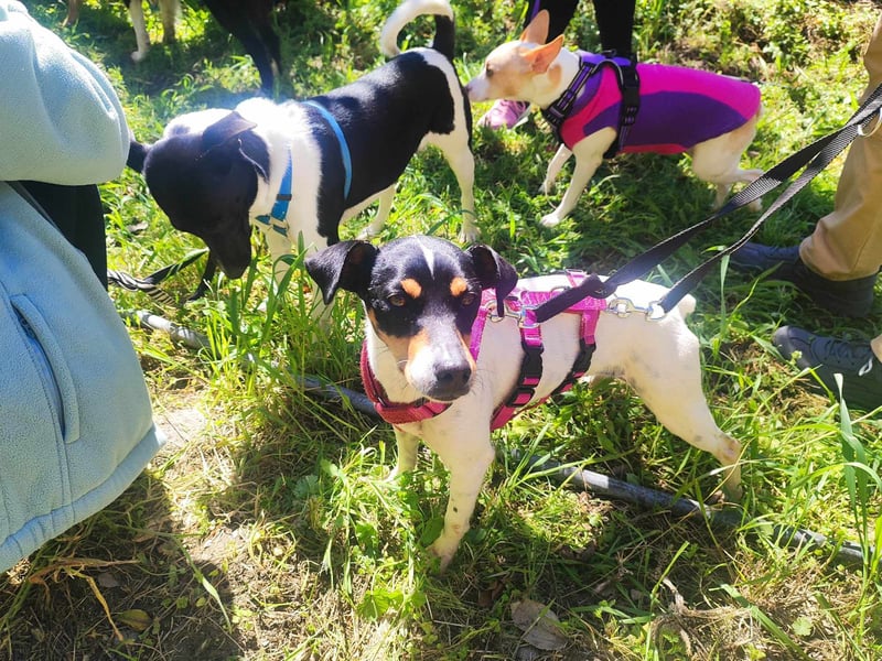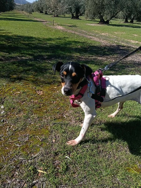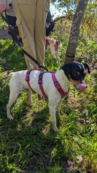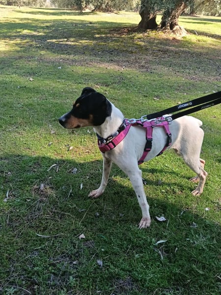 Sie braucht noch etwas Übung im Alltag, besonders beim Spazierengehen, zeigt sich aber lernbereit und kooperativ.