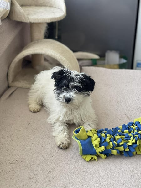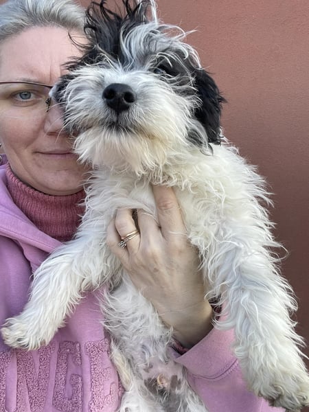 Unsere Tierschützerin Monika beschreibt Patch als liebevollen, sanften, freundlichen, verspielten und süßen kleinen Mann. Sie vermutet einen Bichon-Mix. Patch ist sehr gerne in der Nähe der Menschen und sehr freundlich zu ihnen. Er genießt den Kontakt und freut sich, wenn er gestreichelt wird und Zuneigung bekommt. Der Hübsche durfte auch bereits die anderen Hunde unserer Tierschützer kennenlernen und kommt mit allen gut aus und spielt sehr gerne mit ihnen. Auch mit Katzen hat er keinerlei Probleme und ist ihnen gegenüber sehr freundlich.