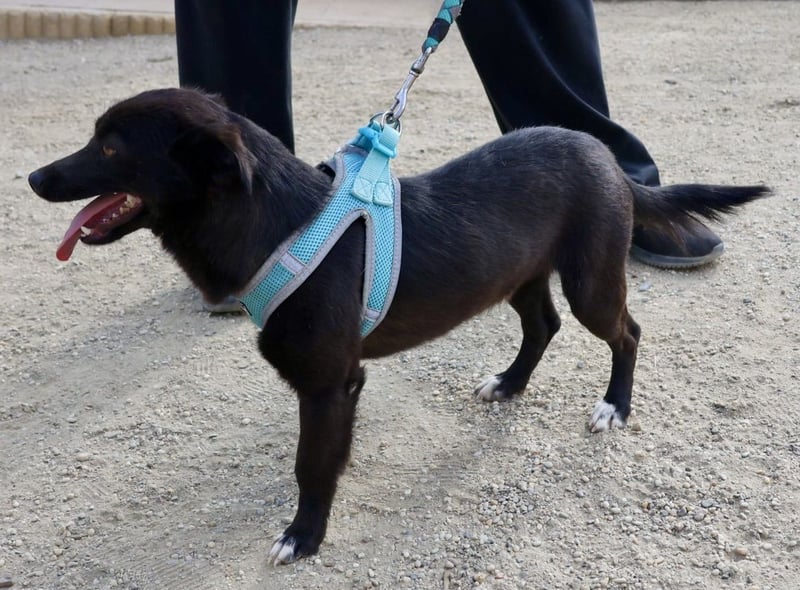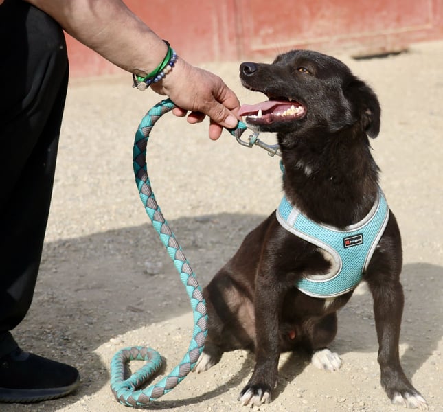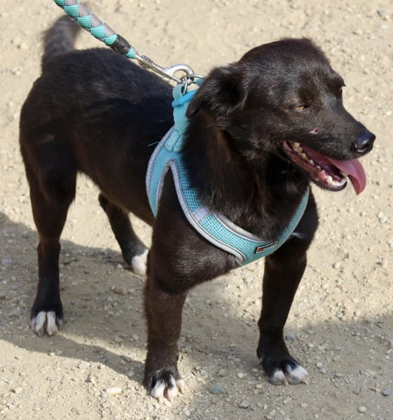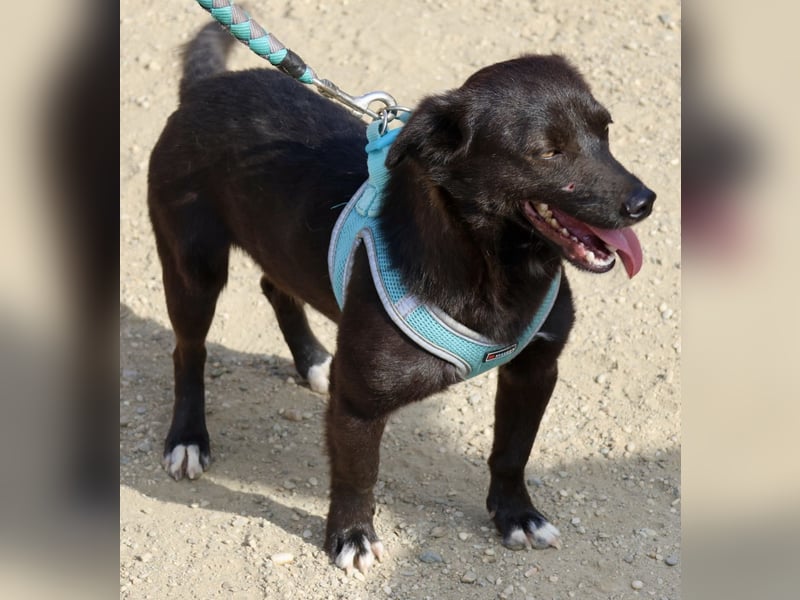 Arthur (4485) Mischling Rüde, geb. am 12.05.2023, hat eine Schulterhöhe von 34 cm und wiegt 8 kg.