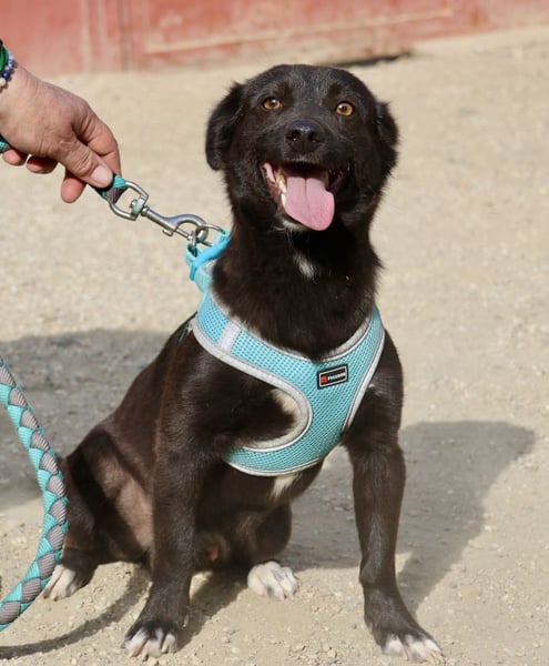 Arthur (4485) Mischling Rüde, geb. am 12.05.2023, hat eine Schulterhöhe von 34 cm und wiegt 8 kg.