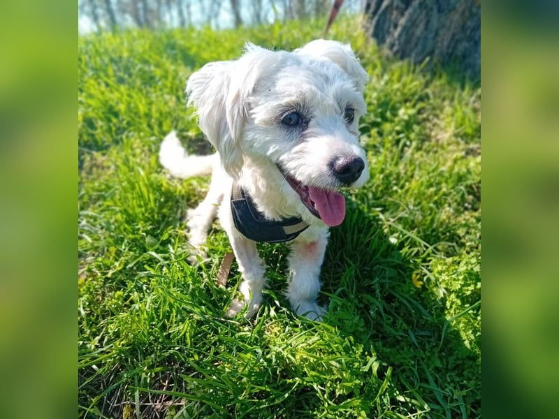 Die kleine, weiße Hündin mit ihrem wuscheligen Fell ist nicht nur äußerlich ein echter Schatz – auch ihr Wesen ist warm, liebevoll und treu. Sie sucht die Nähe zum Menschen, genießt Zuwendung und wird ihrer zukünftigen Familie eine wunderbare Begleiterin sein.