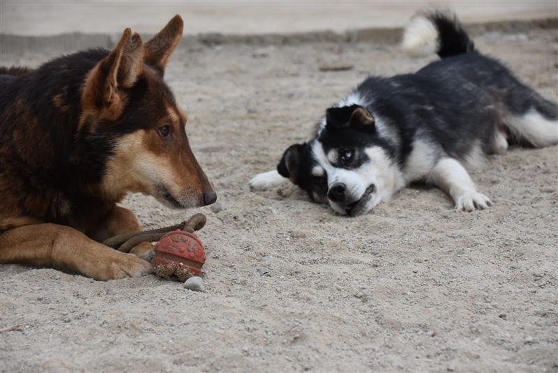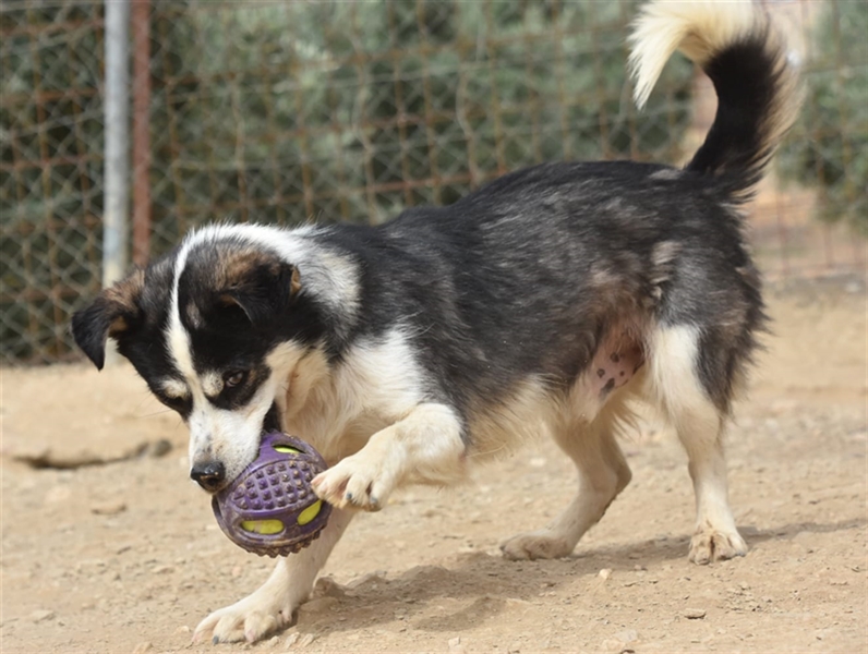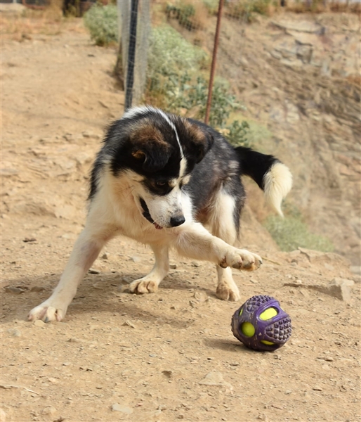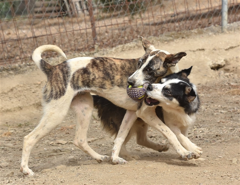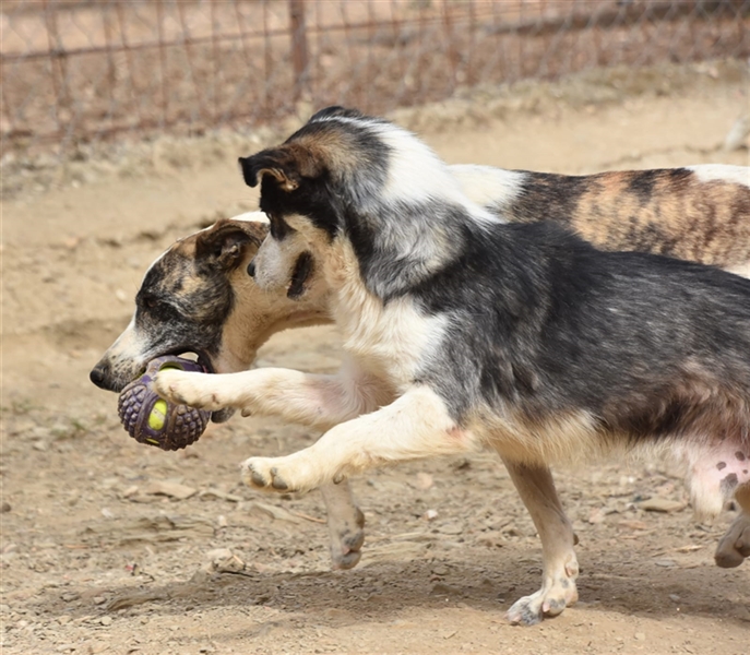Doch nicht nur mit uns Menschen ist Mucki ein geselliges Kerlchen, sondern er versteht sich auch bestens mit seinen Artgenossen. Vormittags dürfen während des Saubermachens der Zwinger alle Hunde gemeinsam nach draußen in den großen Auslauf. Kommen seine Betreuerinnen Tere und Josefine in die große Zwingerhalle, um alle Türen zu öffnen, so steht er natürlich als erster parat. „Taraaaa … auf geht Jungs und Mädels, rein mit uns ins Vergnügen!“ Das scheint Mucki zu rufen und flitzt mit einer Staubwolke hinter sich an allen seinen Freunden vorbei. Rennen, Buddeln, Schnüffeln, sich wälzen, mit seinen Kumpels spielen oder einen Flirt mit einem hübschen Hundemädchen, eben all das, was das Herz eines jungen Hundes begehrt und braucht.