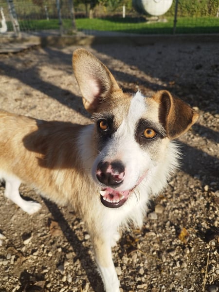 Dolly ist im Zwinger noch recht schüchtern und scheint unter der Lautstärke im Tierheim zu leiden. Ihre Vermittlerin Fritzi konnte sie streicheln und jeden Tag freute sie sich ein bisschen mehr, wenn Fritzi zu ihrem Zwinger kam, um sie zu begrüßen. Sie scheint also trotz ihrer Unsicherheit ihr Vertrauen schenken zu wollen. Außerhalb des Zwingers kann sie ihre Unsicherheiten ablegen und flitzt durch die Gegend.