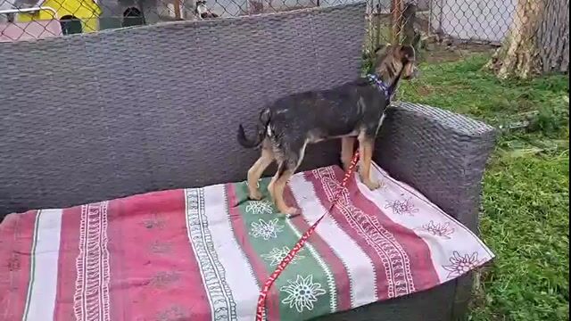 Mats ist welpentypisch verspielt, neugierig und erkundet gerne die Welt. Er wird voraussichtlich mittelgroß (ca. 50 cm). Menschen gegenüber ist er anfangs etwas zurückhaltend, taut aber nach kurzer Zeit auf und zeigt sich dann lieb, tollpatschig und verschmust.