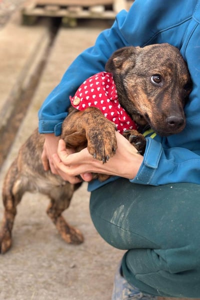 Bea und ihre Geschwister wurden auf einer abgelegenen Straße gefunden, umgeben von dichtem Wald und ohne Schutz oder Versorgung. Zum Glück konnten die Welpen rechtzeitig gerettet werden, sodass Bea heute in Sicherheit ist.