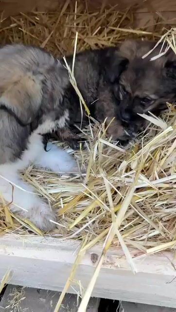 Zum Glück stehen aber noch Maschinen auf dem Hof, die noch im Einsatz sind , so dass ab und zu jemand dort vorbei kommt und die Hundekinder entdeckt wurden.