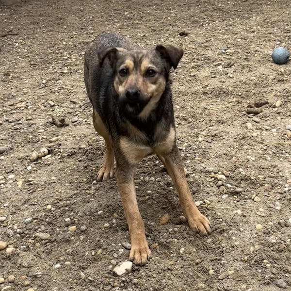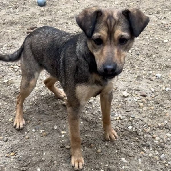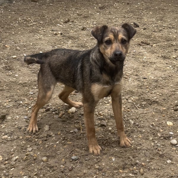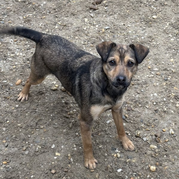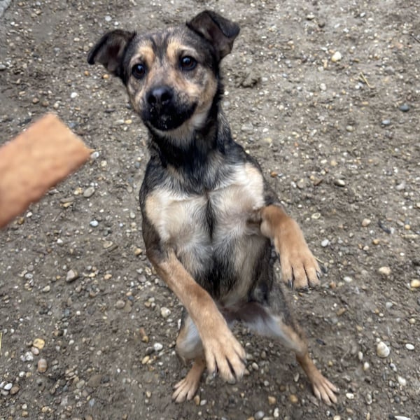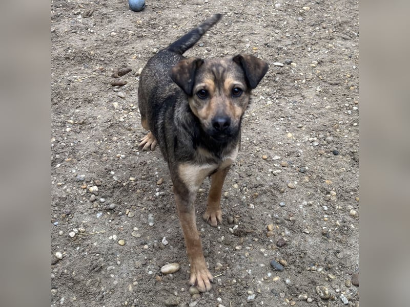 Die kleine Hündin ist noch ängstlich, zurückhaltend, aber sehr lieb und taut bereits auf. Mit anderen Hunden ist sie sehr gut verträglich.