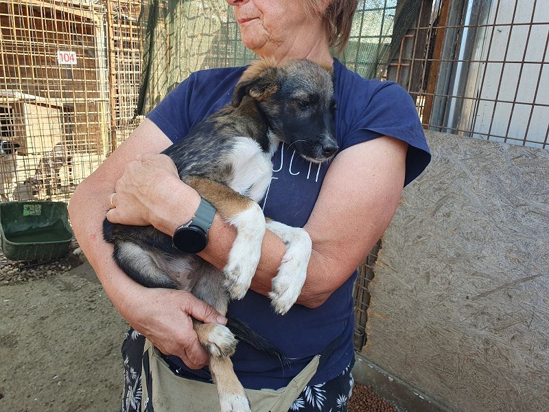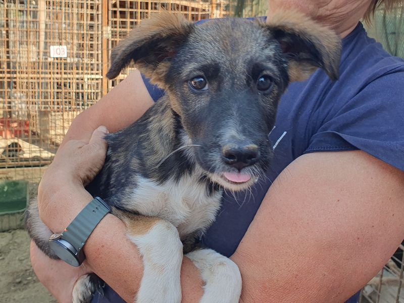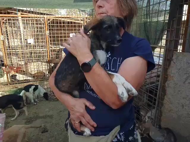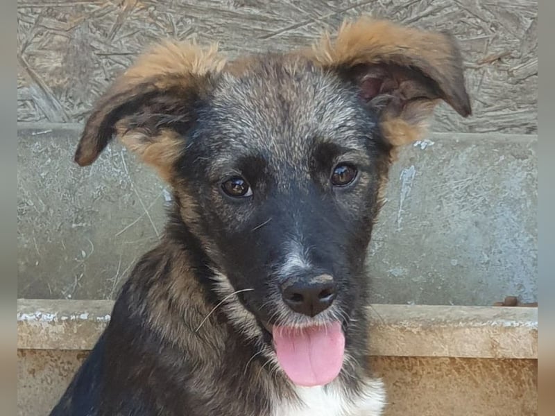 Hazel ist etwa fünf Monate jung und bringt alles mit, was das Herz eines Hunde-Liebhabers höherschlagen lässt: Offen, verspielt, neugierig und dabei ganz menschenbezogen – eine typische Welpin, die das Leben noch entdecken möchte. Optisch ist sie ein echter Hingucker: Ihr dunkles, gestromtes Fell macht sie besonders, dazu trägt sie einen charmanten weißen Tupfer im Nacken, eine weiße Brust und weiße Vorderpfötchen – fast wie kleine Söckchen. Ihre dunkle Schnauze verleiht ihr einen ausdrucksstarken Blick, und die wuscheligen Püschelohren runden das Bild einer echten Herzenshündin ab. Trotz ihrer welpentypischen Energie zeigt sich Hazel auf dem Arm ruhig und entspannt – ein richtiges Kuschelmädchen. Sie nimmt Leckerchen gerne und vorsichtig, ist lernfreudig und hat jetzt schon Spaß am Kontakt mit Menschen. Diese kleine Hündin wünscht sich ein liebevolles Zuhause, in dem sie behütet aufwachsen und die Welt entdecken darf. Menschen, die ihr mit Geduld und Herz zeigen, wie schön ein Hundeleben sein kann. Wer verliebt sich in dieses süße Hundekind und schenkt ihr ein Zuhause für immer?