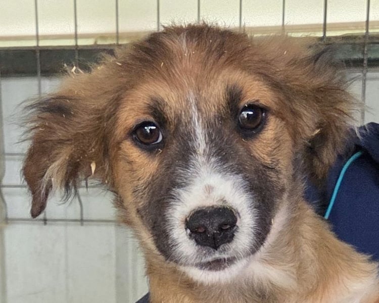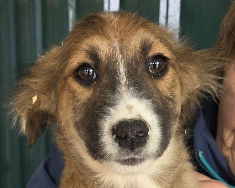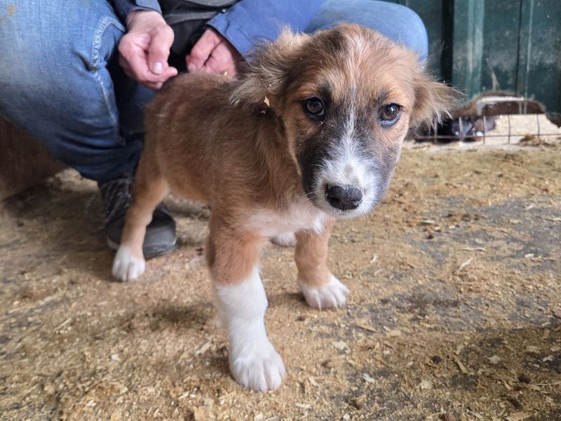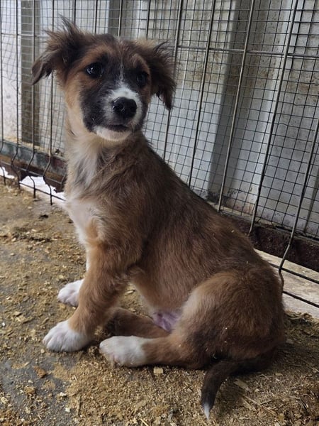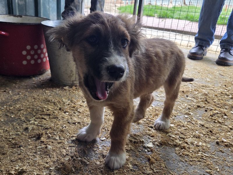 Jani ist ein ganz besonderer kleiner Rüde, der mit seinem braun-schwarz gestromten Fell, dem weißen Strich auf der Nase, den niedlichen weißen Pfötchen und seinen flauschigen Ohren sofort ins Auge fällt. Als wir ihn kennengelernt haben, begrüßte er uns voller Neugier und Interesse – ein fröhlicher, aufgeweckter Welpe, der die Welt entdecken möchte.