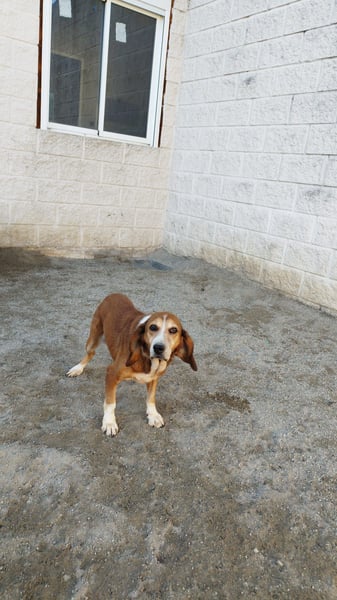 Moca wurde zusammen mit acht weiteren Hunden aus schlimmen Verhältnissen von einem Jäger in Spanien gerettet. Einer der armen Hunde hat es nicht geschafft und lag bereits tot neben den anderen Hunden im Zwinger des Jägers, als die Hunde gerettet wurden.