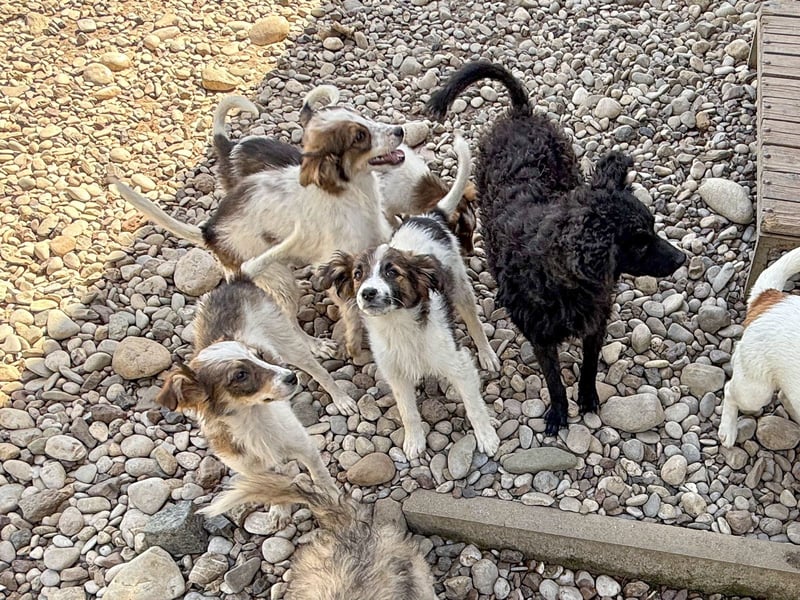 Hier wurde sich wunderbar um uns gesorgt und wir sind zu quirligen, lebensfrohen, gesunden jungen Hunden herangewachsen, die ihr Leben in vollen Zügen genießen. Den lieben langen Tag toben wir herum, entdecken neugierig den Auslauf, dösen in der Sonne und genießen die Aufmerksamkeit der Menschen hier. Gerüchten zufolge soll es da draußen irgendwo Menschen geben, die ganz genau auf MICH süßen, kleinen Zwuckel warten. Ist das wirklich wahr?!