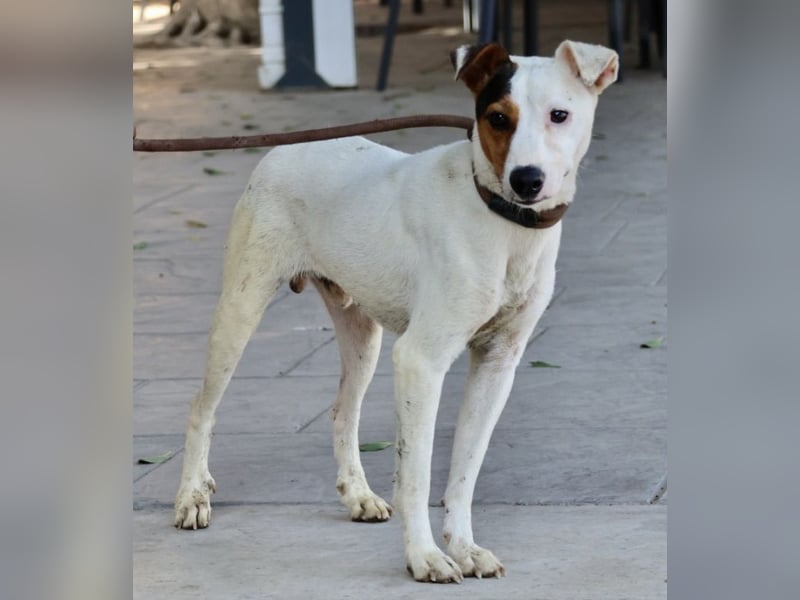 Parche (4256) Mischlings Bub, geboren am 13.02.2022, hat eine Schulterhöhe von 39 cm und wiegt 8,5 kg.
