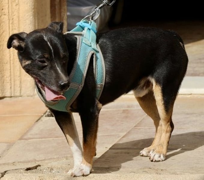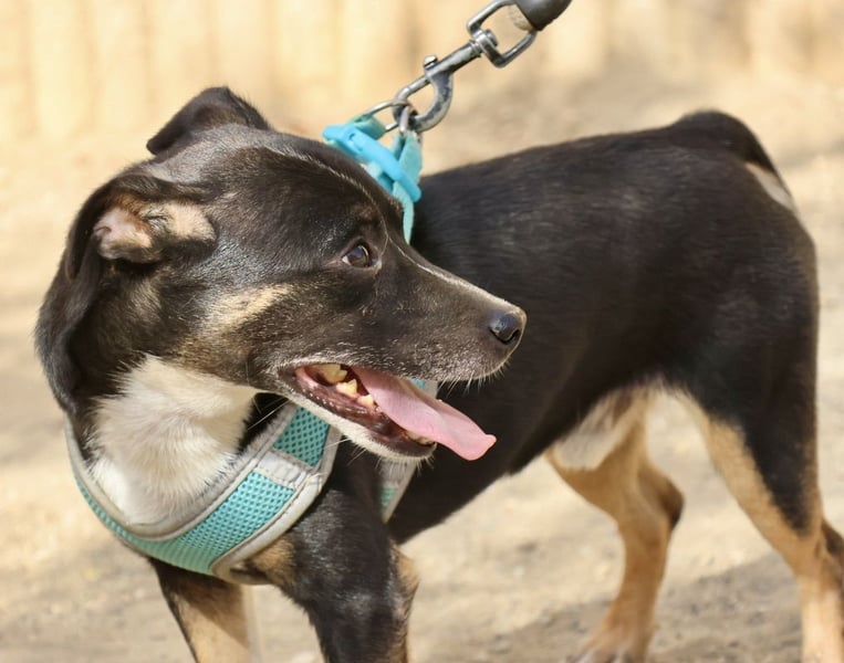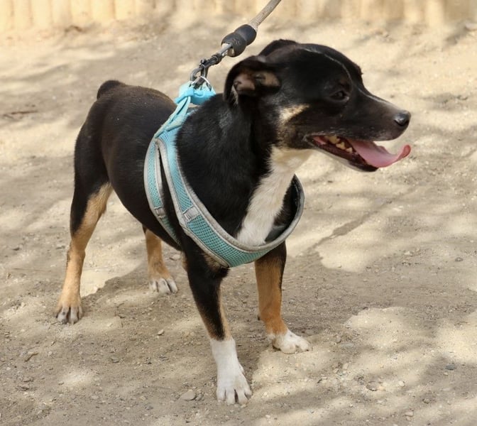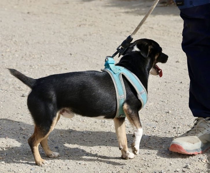Toby (4534) Mix Rüde, geb.am 15.11.2023, hat eine Schulterhöhe von 35 cm und wiegt 7 kg.