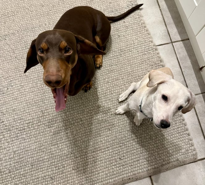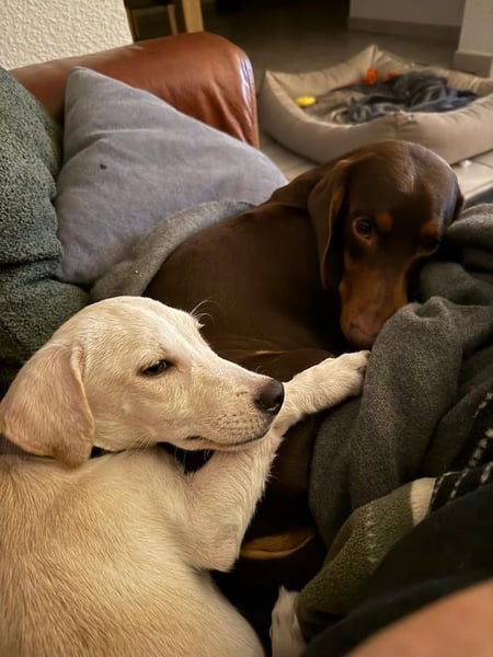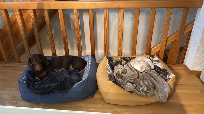 Anfangs gab es noch kleine Missgeschicke zu Hause, doch inzwischen löst er sich gut im Garten oder auf Spaziergängen. Er zeigt deutlich an, wenn er raus möchte, oder geht selbstständig in den Garten, wenn er die Möglichkeit dazu hat. Nachts wird er ungefähr zwischen 2 und 3 Uhr wach und möchte gerne raus. Er schläft aktuell im Schlafzimmer in seinem eigenen Körbchen.
