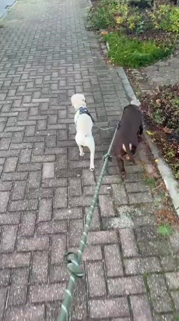 Spaziergänge im Wald liebt er sehr und auch an der Straße klappt es gut. Wenn er unsicher ist oder unbekannte Dinge entdeckt, bleibt er stehen und schaut zu. Bisher hat er sich nur einmal vor einer Straßenkehrmaschine erschrocken und ist dann zurück zum Haus gelaufen.