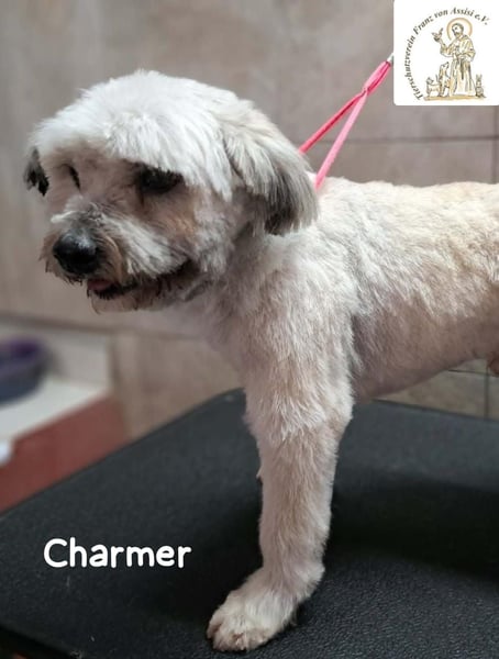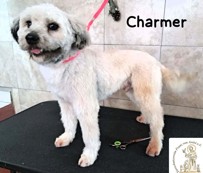 Charmer ist ein junger Rüde aus Bosnien, der plötzlich allein in einer Stadt auftauchte. Er war in einem sehr schlechten Zustand, sein Fell war stark verfilzt und lang, sodass er kaum aus den Augen sehen konnte. Glücklicherweise wurde er aufgenommen, gebadet und geschoren, damit er sich in seiner Haut wieder wohlfühlen kann. Unter all den Verfilzungen zeigt sich jetzt, welch prachtvoller Bursche er eigentlich ist. Er wurde in einer Pension untergebracht, wo er nun in Sicherheit ist.