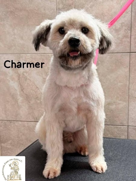 Charmer hat zwar noch viel zu lernen, aber eines hat er schon drauf: mit seinen treuen Augen und seinem charmanten Wesen schafft er es, jedes Herz im Sturm zu erobern. Manchmal schaut er dich so verschmitzt an, als würde er sagen: „Na, zeig mir mal die Welt, aber vergiss die Leckerlis nicht!“