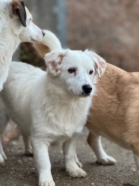 Felia ist sehr unsicher und lässt sich nur mit Widerwillen anfassen. Wer weiß, was sie erlebt hat, bevor Floriela sie fand. Doch auch Felia zeigt Fortschritte - sie kommt bereits aus ihrer Hütte, wenn Futter gebracht wird. Felia braucht ein ruhiges Zuhause mit geduldigen Menschen, die ihr Zeit geben. Ein souveräner Ersthund wäre eine wertvolle Stütze für sie.