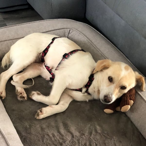 Mirka stand kurz vor ihrem Tod, denn als sie gefunden wurde kam es zu einer tragischen Geburtskomplikation: Ein bereits verstorbener Welpe steckte in ihrem Geburtskanal fest, alle weiteren Welpen waren zu diesem Zeitpunkt bereits im Mutterleib gestorben. Nur durch einen sofortigen Not-Kaiserschnitt konnte Mirka gerettet werden. Im Zuge der Operation wurde sie sofort kastriert.