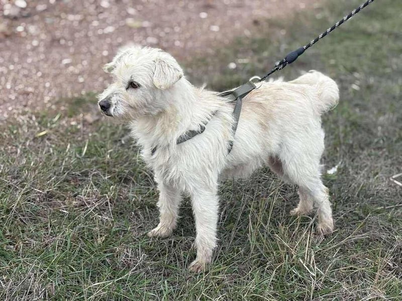 Menschen gegenüber ist sie freundlich und zugewandt- eine Hündin die die Nähe ihres Menschen genießt und viel Potenzial für eine enge Bindung mitbringt. Bei plötzlichen Bewegungen zuckt die Maus manchmal zusammen. Das zeigt, dass sie vermutlich nicht nur Gutes erlebt hat und noch ein wenig Sicherheit braucht. Mit Ruhe , Geduld und einem verlässlichen Umfeld wird sie verstehen, dass ihr nichts passiert.Ihre Mutter ist wahrscheinlich Molli, da beide aus demselben Besitz stammen. Für die kleine Hundedame wünschen wir uns Menschen, die sie liebevoll, aber klar führen, ihr Sicherheit geben und ihr zeigen, wie schön das Leben sein kann.