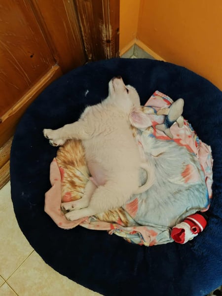 Selbstverständlich darf er auch zu einem bereits gut erzogenen, souveränen Ersthund im passenden Alter ziehen, damit er einen Kumpel zum Spielen und Lernen hat.