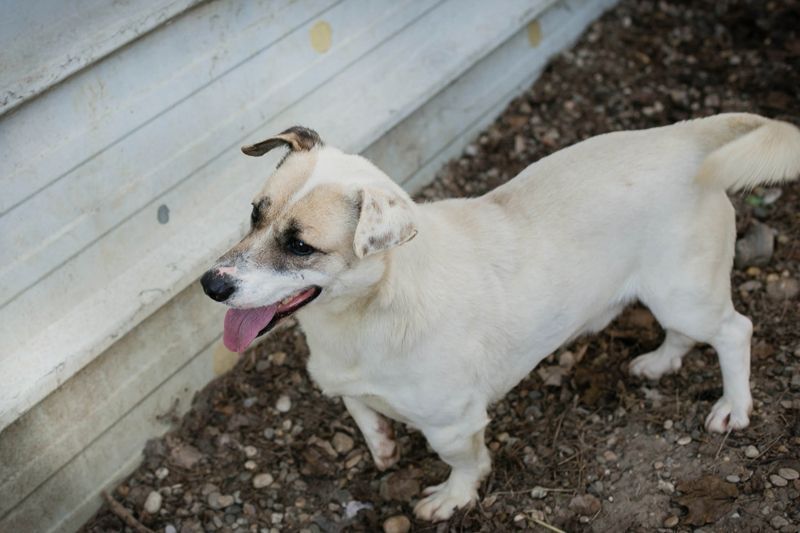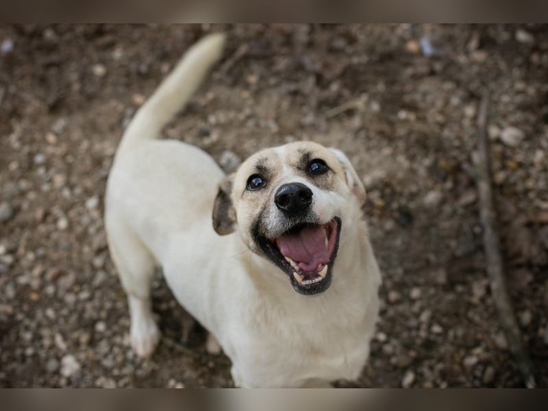 Diesen Rüden haben wir aus einer Romasiedlung übernommen. Er darf nun im Tierheim seine Zeit verbringen und diese nutzt er mit Lernen und Üben. Er hat sich den Menschen angeschlossen und freut sich, dass sich diese mit ihm etwas beschäftigen.