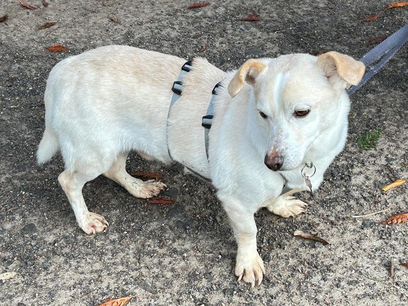 Auch im Auto fährt er bereits problemlos mit. Seinem Pflegefrauchen läuft er hinterher und orientiert sich sehr an ihr. Fremde Menschen werden erstmal begutachtet. Er verhält sich ruhig in der Wohnung und schläft im Schlafzimmer in seinem Körbchen. Leine anziehen und Fellpflege klappen bei ihm problemlos. Wenn er sein Geschirr sieht, wackelt sein kleiner Körper vor Freude, dass es rausgeht und er mitkommen darf. Er ist sehr sozial mit anderen Hunden und hat das Spielen mit diesen entdeckt. Mit seiner Pflegemama war er auch schon im Städtchen (Post/Bank/Restaurant) alles macht er problemlos. Er ist zwar zu Anfang immer noch vorsichtig bei fremden Menschen, taut aber immer mehr auf und lässt sich nach mehreren Treffen auch anfassen. Er braucht Zeit zu vertrauen. Ist das Eis gebrochen weicht er einem nicht mehr von der Seite.