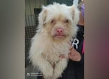 Genau wie Artico scheint auch Olaf ein Teilalbino zu sein, denn auch sein Nasenspiegel und seine hellblauen Augen sind nur sehr gering pigmentiert. Aus diesem Grund möchten wir auch Olaf unbedingt nach Deutschland vermitteln, ein Leben unter der strahlenden Sonne Spaniens ist für derart gering pigmentierte Tiere absolut ungesund. Nicht selten tragen sie furchtbare Verbrennungen davon, deren Resultat dann irgendwann Hauttumore sind. In Deutschland mit entsprechendem Sonnenschutz werden Olaf und Artico definitv besser aufgehoben sein.