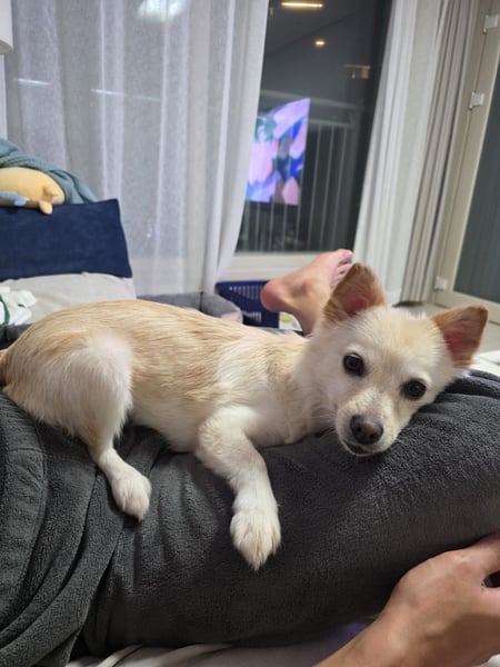 Jisoon kam im Jahr 2023 in ein städtisches Tierheim, nachdem sie von einem Anwohner gemeldet wurde. Nach ihrer Rettung zog sie in eine Pflegestelle, wo sie sich sehr gut an das Leben in einem Zuhause angepasst hat.
